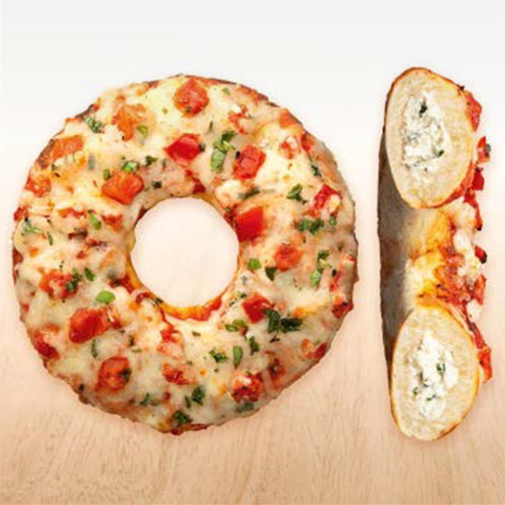 modifizierte Kartoffelstärke, Gewürze (Basilikum, Petersilie, Knoblauch, Kurkuma), Sonnenblumenkerne, Speisesalz, Zucker, Branntweinessig, Verdickungsmittel (Guarkernmehl, Xanthan)], passierte Tomaten, Wasser, 6% Mozzarella 40% Fett i. Tr. [pasteurisierte KuhMILCH, Speisesalz, Starterkulturen, mikrobielles Lab], 6% Gouda 48% Fett i. Tr. [pasteurisierte KuhMILCH, Speisesalz, Starterkulturen, mikrobielles Lab], 6% Tomaten, Rapsöl, Hefe, jodiertes Speisesalz [Speisesalz, Kaliumjodat], Zucker, Gewürze [Basilikum, Oregano, Knoblauch, Pfeffer, Chili].