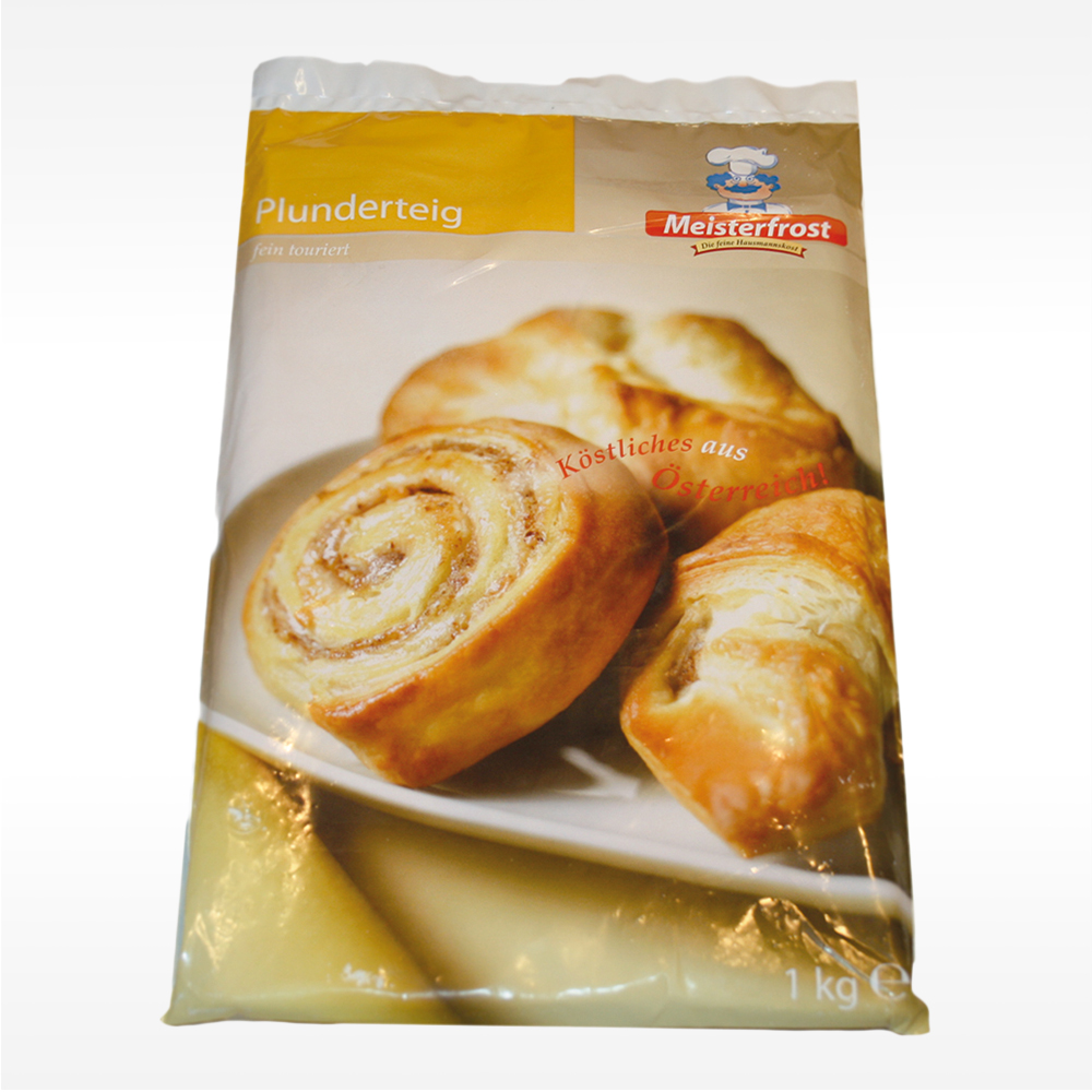 | 1. Den tiefgefrorenen „Plunderteig“ bei Zimmertemperatur ca. 1 Stunde aufgehen lassen. 2. Den aufgetauten „Plunderteig“ in der Stärke von 3-4 mm ausrollen und die gewünschten Teigstücke formen. |