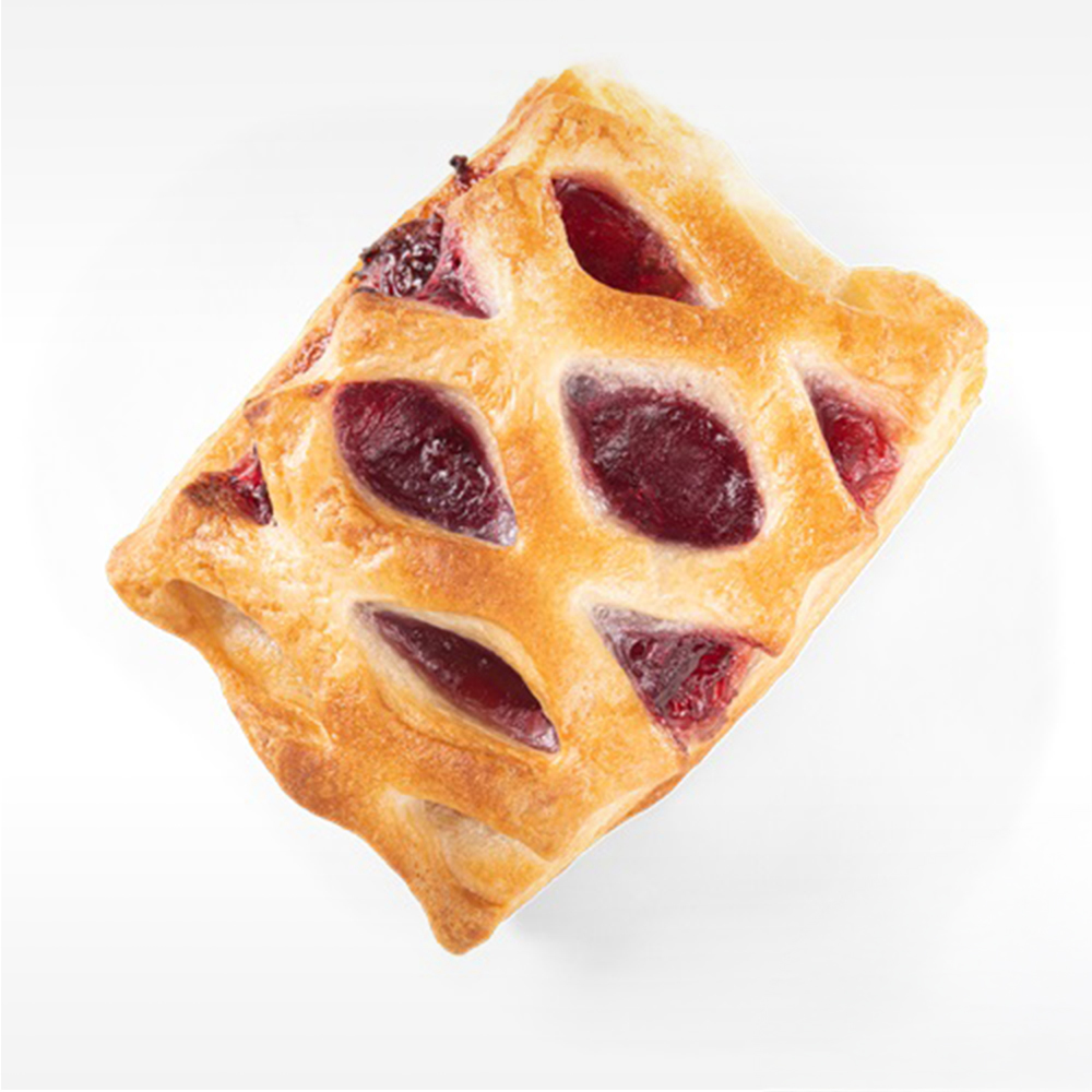Fruchtfüllung Weichsel 28% (Weichseln (Sauerkirschen), Zucker, modifizierte Stärke, Säuerungsmittel: Zitronensäure, Konservierungsstoff: Kaliumsorbat, natürliches Aroma), WEIZENmehl, Margarine palmölfrei (Pflanzliche Öle und Fette (Raps ganz gehärtet, Kokos, Sonnenblume), Wasser, Emulgator: Mono- und Diglyceride von Speisefettsäuren, Speisesalz, Säuerungsmittel: Zitronensäure, Säureregulator: Natriumcitrate), Wasser, Zucker, Hefe, VollEI, Backmittel (WEIZENmehl, Trennmittel: Calciumcarbonat,