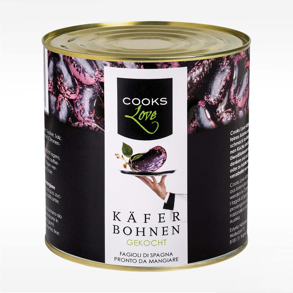 Käferbohnen, Wasser, Zucker, Salz, Weingeistessig, Säuerungsmittel: Zitronensäure