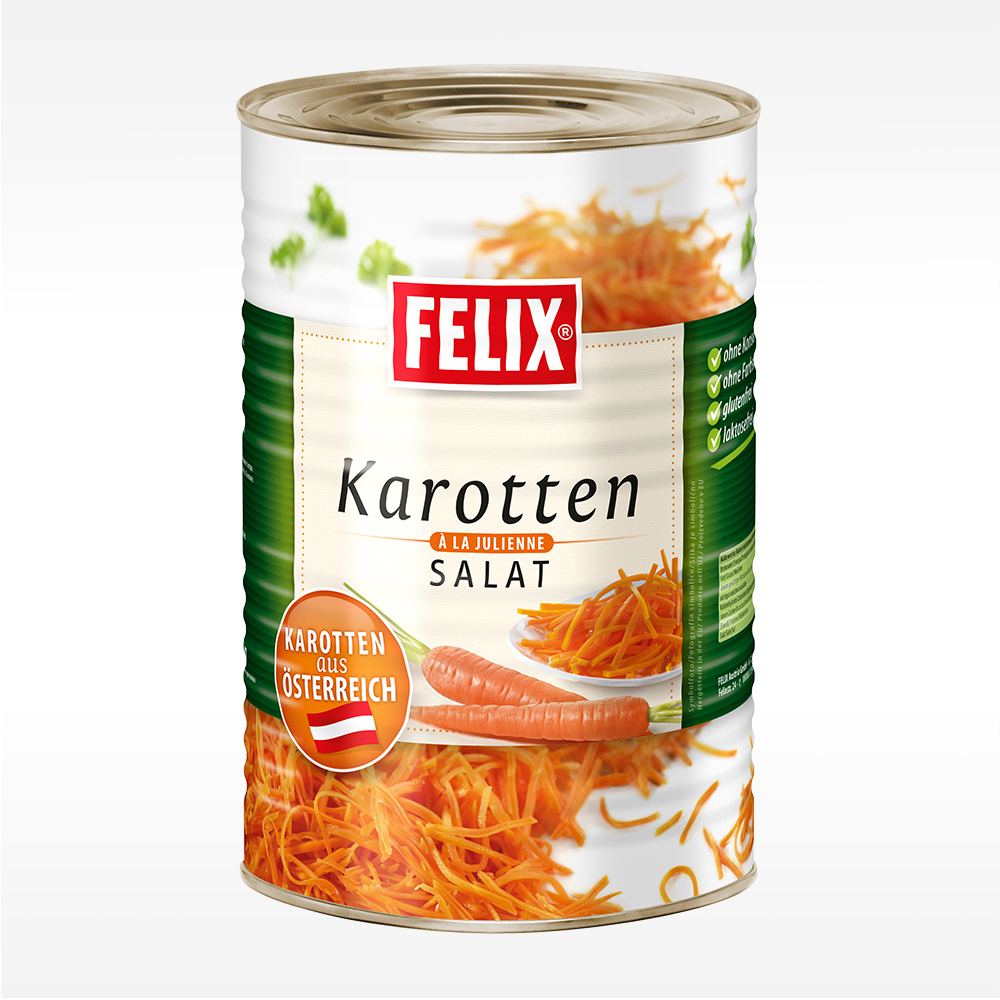 Karotten, Weingeistessig (CH,D: Branntweinessig), Salz, Süßungsmittel Saccharin