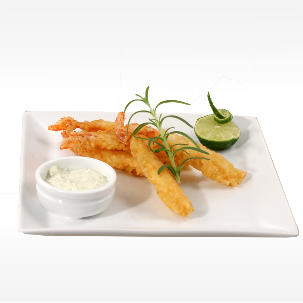 50 % Vannamei-Garnelen mit Wasser [905 KREBSTIERE, Wasser, Feuchthaltemittel (E450, E451, E452), Salz], Wasser, WEIZENmehl, Sojaöl, WEIZENstärke, modifizierte Stärke (E1420), Mais Stärke, SOJAprotein, Backtriebmittel (E450, E500, E341), Salz, WEIZENfaser
