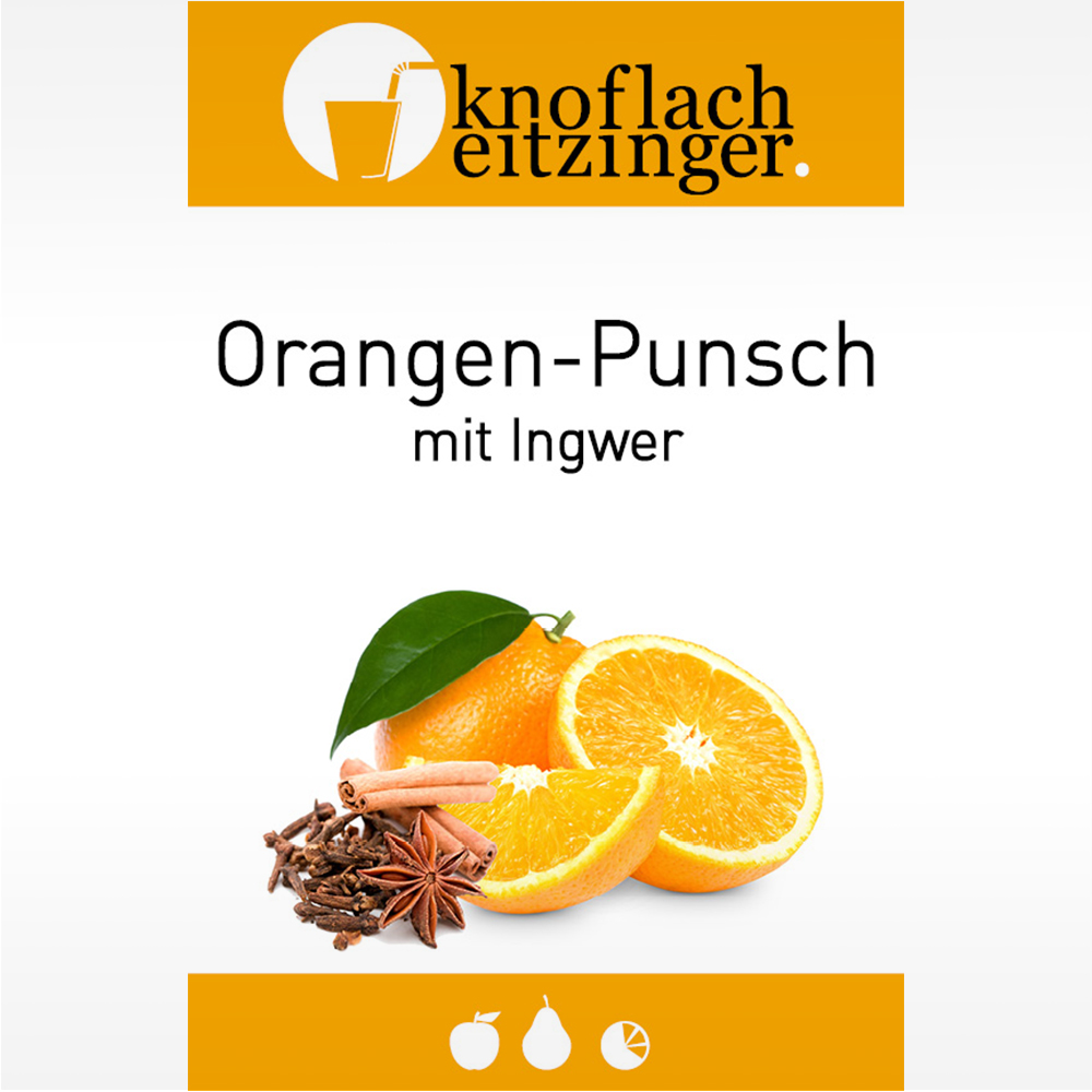 Orangensaftkonzentrat, Wasser, Zucker, Zitronensaftkonzentrat, Säuerungsmittel: Zitronensäure, Aroma, Konservierungsmittel, Natriumbenzoat, Gewürznelken-, Ingwer- und Zimtrindenextrakt, Fruchtgegalt: 277,8%