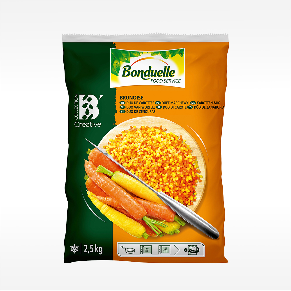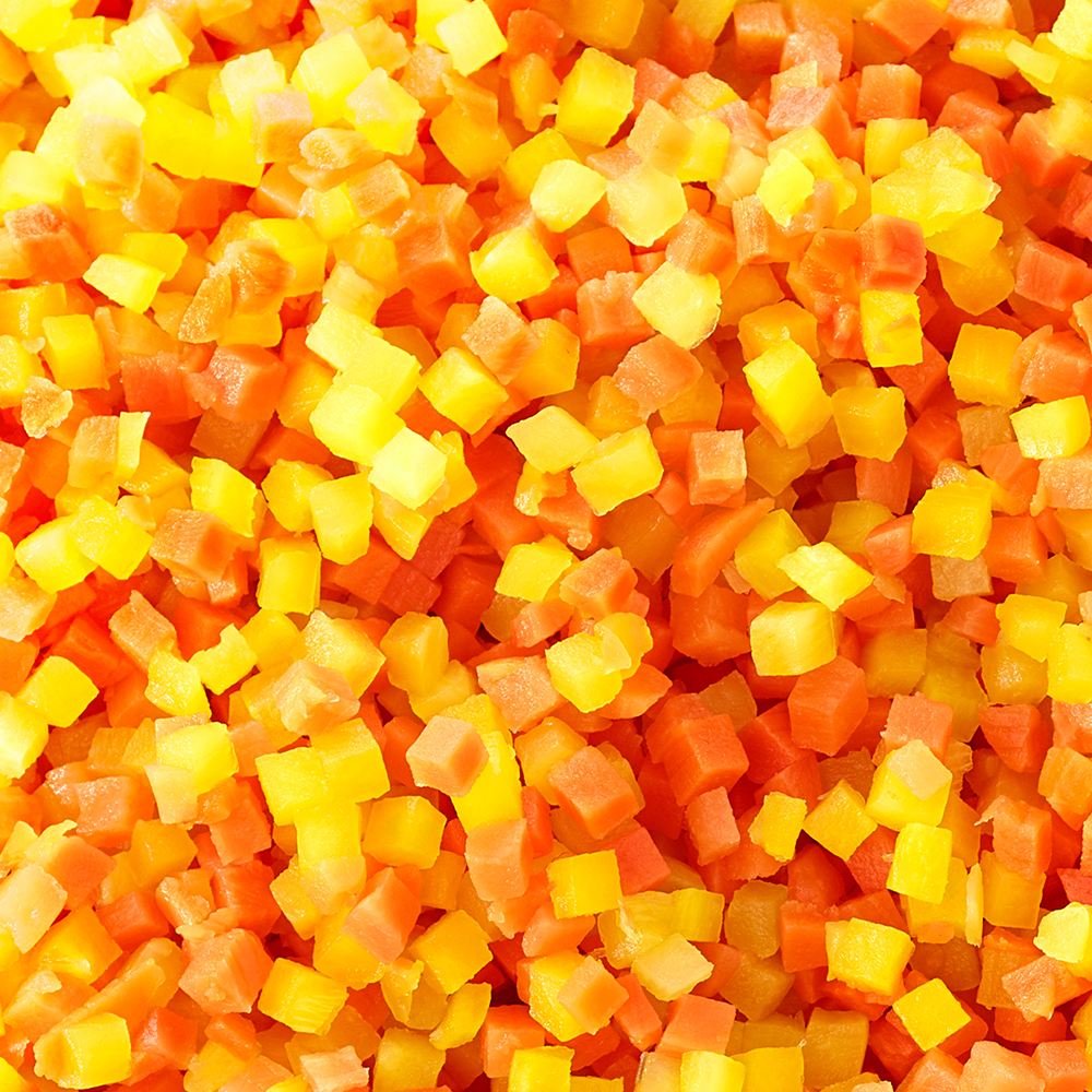 Minute dampfgegart, Karotten orange und gelb, fein gewürfelt