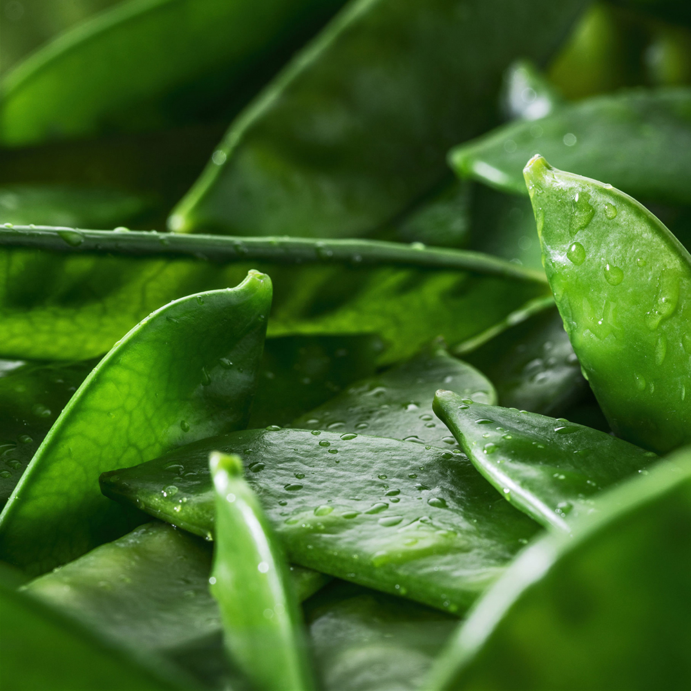 Zuckererbsenschoten. Kann Spuren von SELLERIE enthalten.