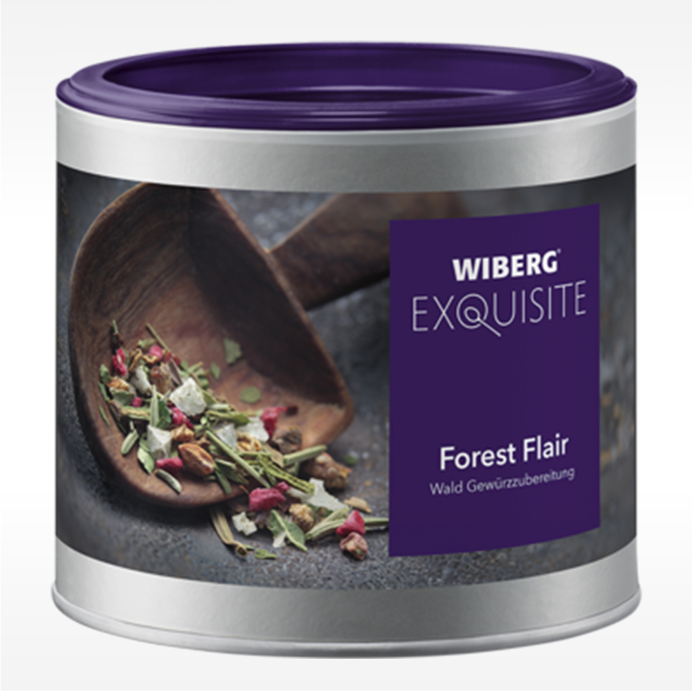 Gewürze (Bergbohnenkraut, Bärlauch, Wacholder, rosa Pfeffer), Fichtennadeln, Meersalz, Steinpilzgranulat, Himbeergranulat, Zirbenöl, Latschenkieferöl