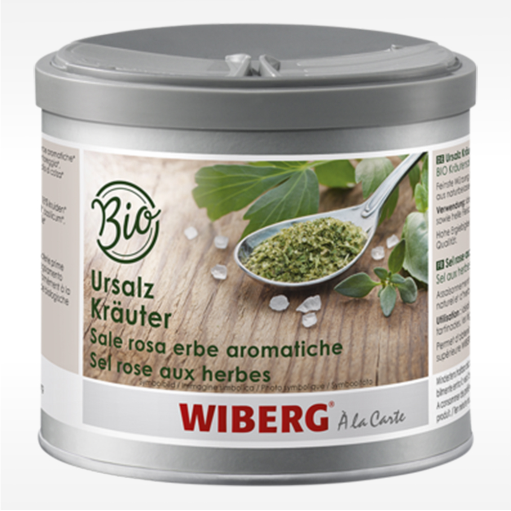 82 % Ursalz, 18 % Kräuter* (Petersilie*, Liebstöckel*, Bohnenkraut*, Basilikum*, Thymian*), Apfelfaser*, Rapsöl* . * Rohstoffe aus kontrolliert biologischem Anbau gemäß EG-Öko-Verordnung