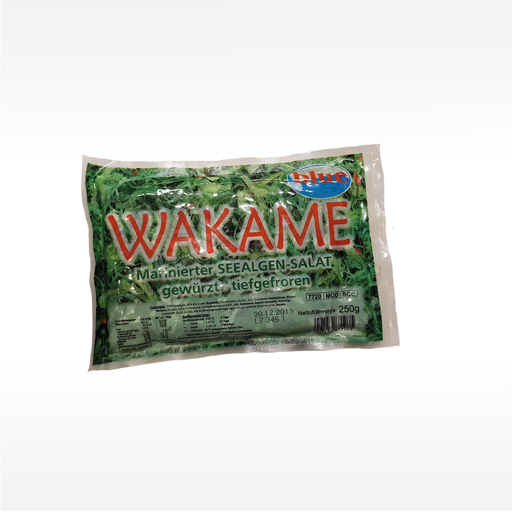 77% Seealgen (Undaria pinnatifida), 10% Marinade (Sesamöl, Fruktose, Zucker, Salz, Sojasauce (Sojabohnen, Wasser, Weizen, Zucker, Salz), Chiliflocken, Chili Bean Sauce (Chili, Salz, Sojasauce, Sojabohnenöl, Sesamöl), Reisessig, Farbstoffe (E102, E133), 6% Verdickungsmittel: Agar Agar, 6% getrocknete Pilze, Sesam