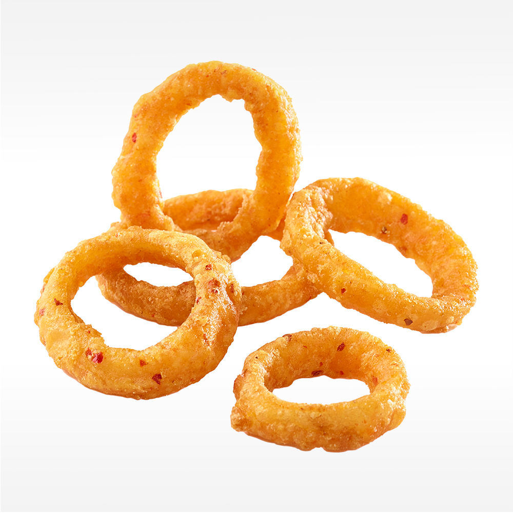 Zwiebelringe in einer knusprigen, würzig-pikanten Panade, vorgebacken