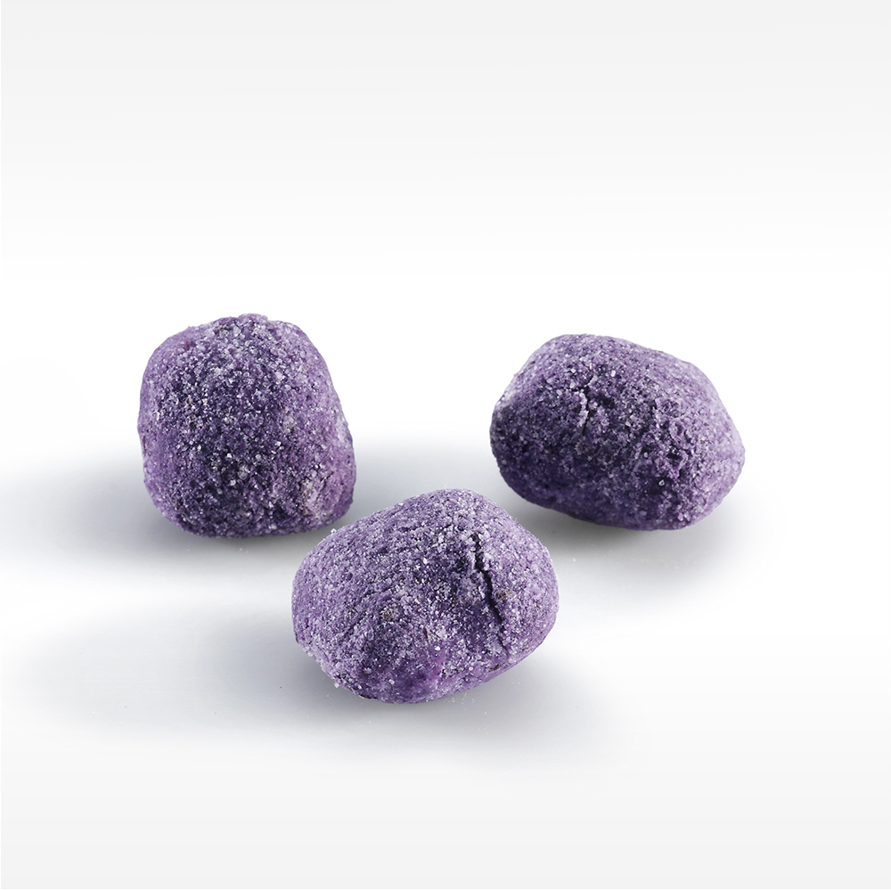Püree aus lila Kartoffeln 68% (vitelotte), Weichweizenmehl Typ "00", Wasser, Kartoffelstärke, Salz, Reismehl auf der Oberfläche.