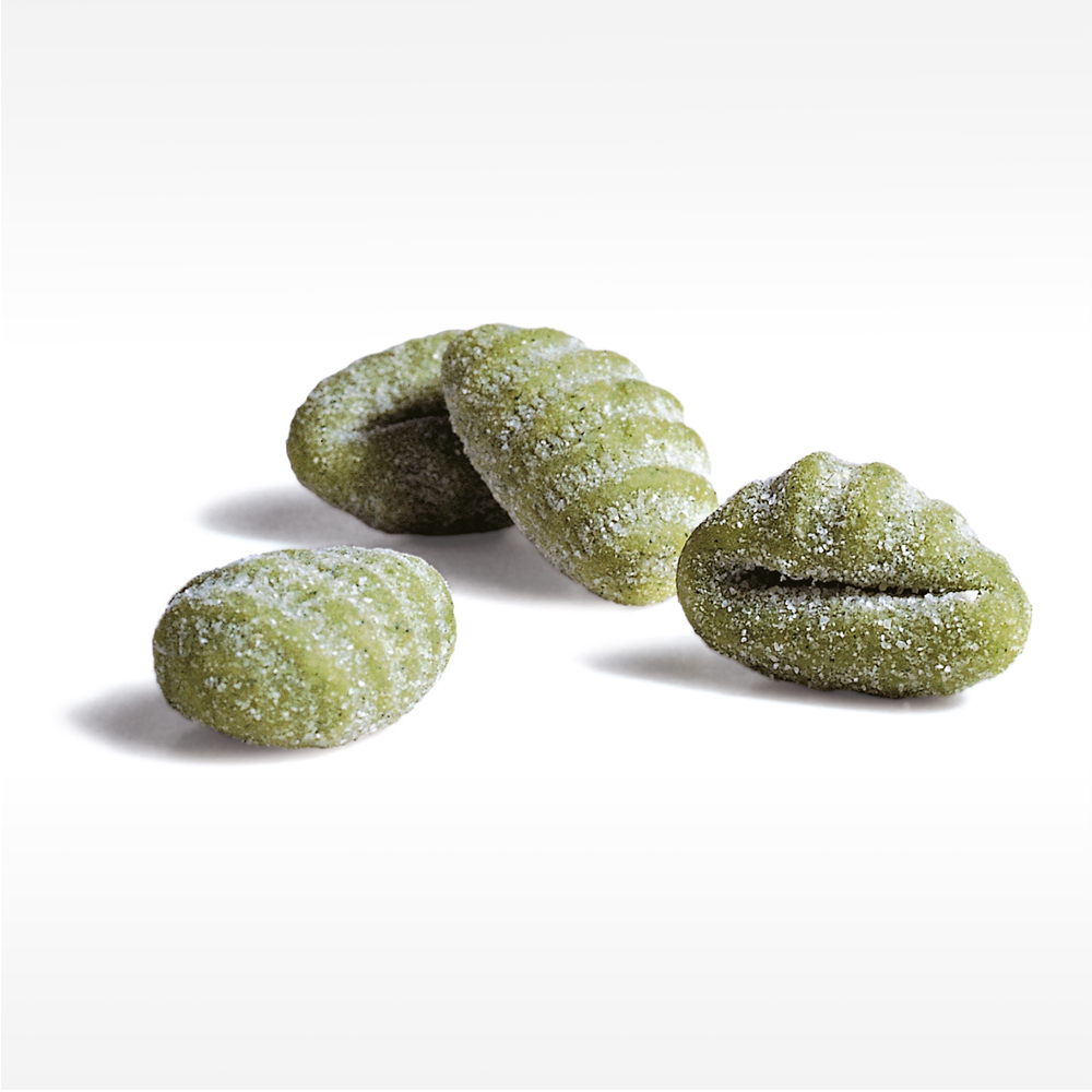 oval-gestreifte grünfarbige Teigtaschen mit Spinat, 5-7g
