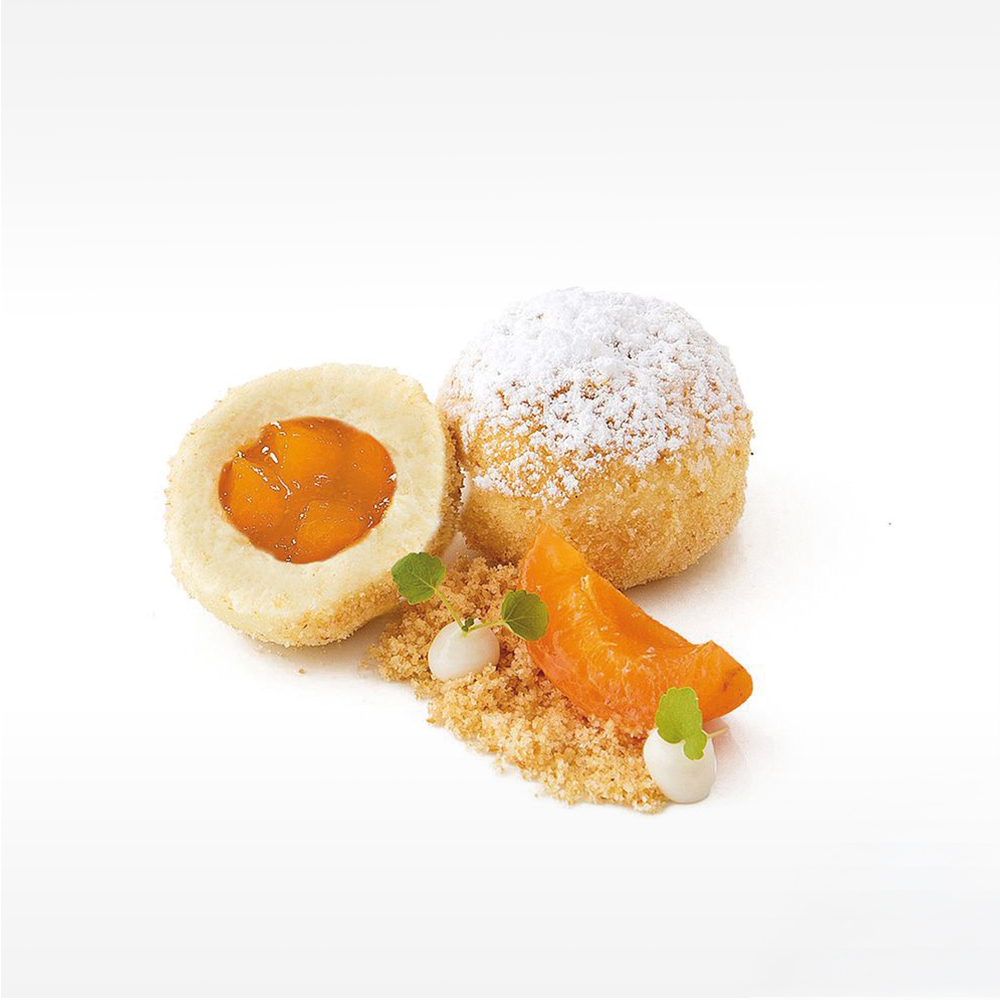 roh,Topfen-/Quarkknödel mit Aprikosen-Füllung, flaumig, locker mit saftigen Marillenstücken