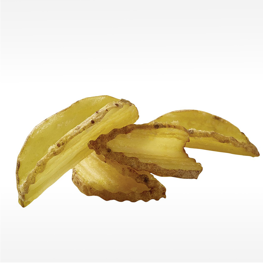 Kartoffeln (88,5%), Sonnenblumenöl, Ummantelung (5,5%): modifizierte Stärke, Reismehl, Dextrin, Verdickungsmittel, Xanthan, Salz