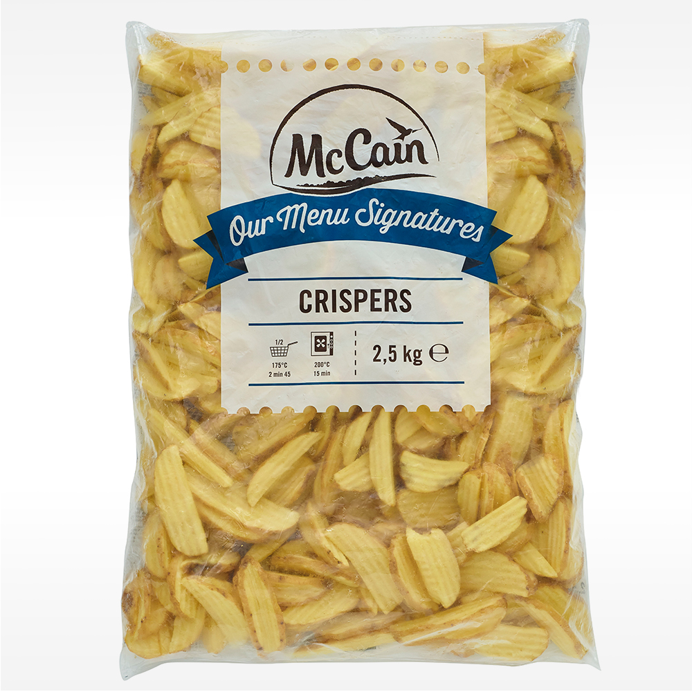 gesalzen, mit Schale, knuspriger Hülle, vorfrittiert. 5 Säcke à 2,5kg / Karton.