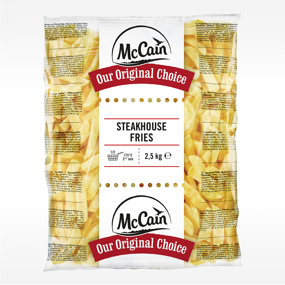 Steakhouse Schnitt, vorgebacken, tiefgefroren. 5 Säcke à 2,5kg / Karton.