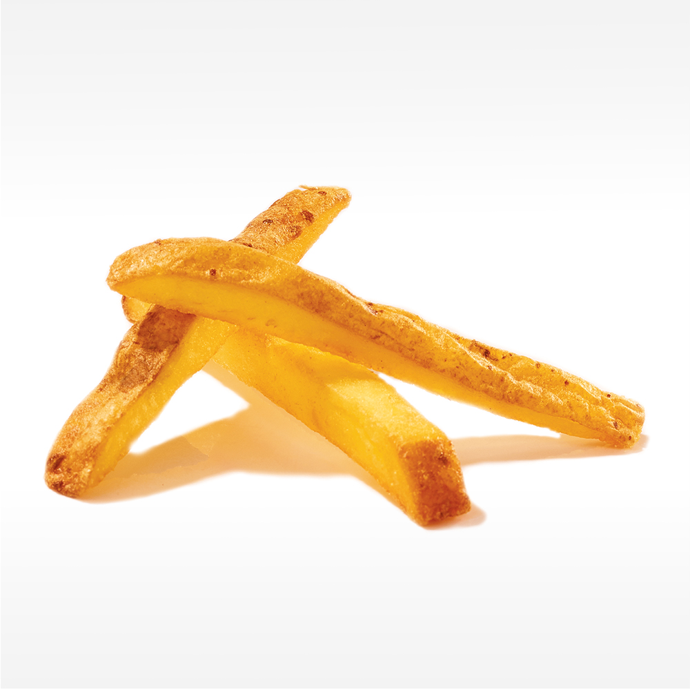 gesalzen, knuspriger Hülle, vorfrittiert und tiefgefroren. 4 Säcke à 2,5kg / Karton.