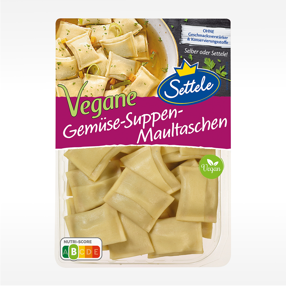 gemüsehaltige Füllung: 55 % Gemüse in veränderlichen Gewichtsanteilen (Karotten, Zwiebeln, Spinat, Bohnen, Erbsen, Mais, Paprika, SELLERIE), Semmelbrösel (WEIZENMEHL, Hefe, Speisesalz), Trinkwasser, Speisesalz, Stärke, WEIZENGLUTEN, Gewürze, Zucker, Stabilisator (Natriumcitrate), Gewürzextrakte, Traubenzucker. Teigmantel: HARTWEIZENGRIESS, Trinkwasser, Speisesalz.