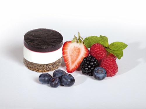 Joghurt-Heidelbeer-Creme auf Mohnküchlein