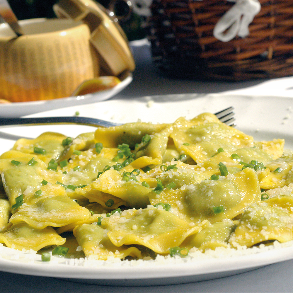 Füllung: Spinat 19,79%, Topfen 5,74% (Molke), Kartoffelflocken, Zwiebel, Salz.