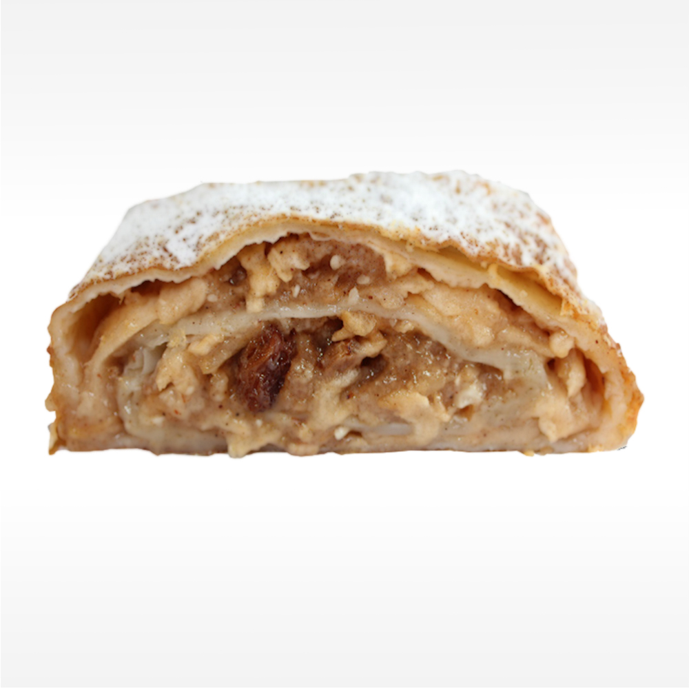 Frische Äpfel (68%), WEIZENMEHL, Wasser, past. VOLLEI, Zucker, PANIERMEHL (WEIZENMEHL, Hefe, Salz), BUTTER, MANDELN, Stärke, Jodsalz, Rapsöl, Zimt, Ingwer