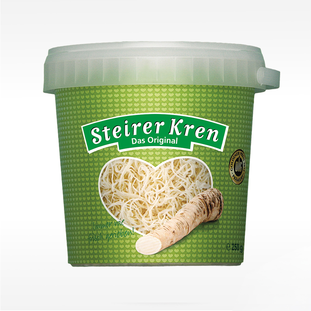 Steirischer Kren g.g.A. (95 %), Rapsöl, Säuerungsmittel: Citronensäure, Salz, Antioxidationsmittel: Natriummetabisulfit (Sulphite)