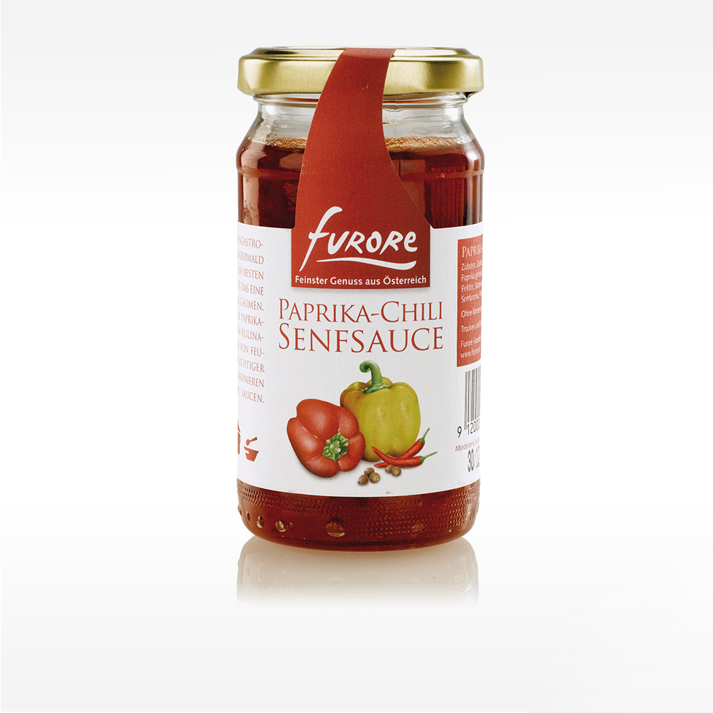 Zucker, Glukosesirup, 25% Paprika, Branntweinessig, Wasser, Geliermittel: Pektin, Säuerungsmittel: Citronensäure, 0,27% Chili, Aroma, Senföl, natürliches Pfefferaroma.