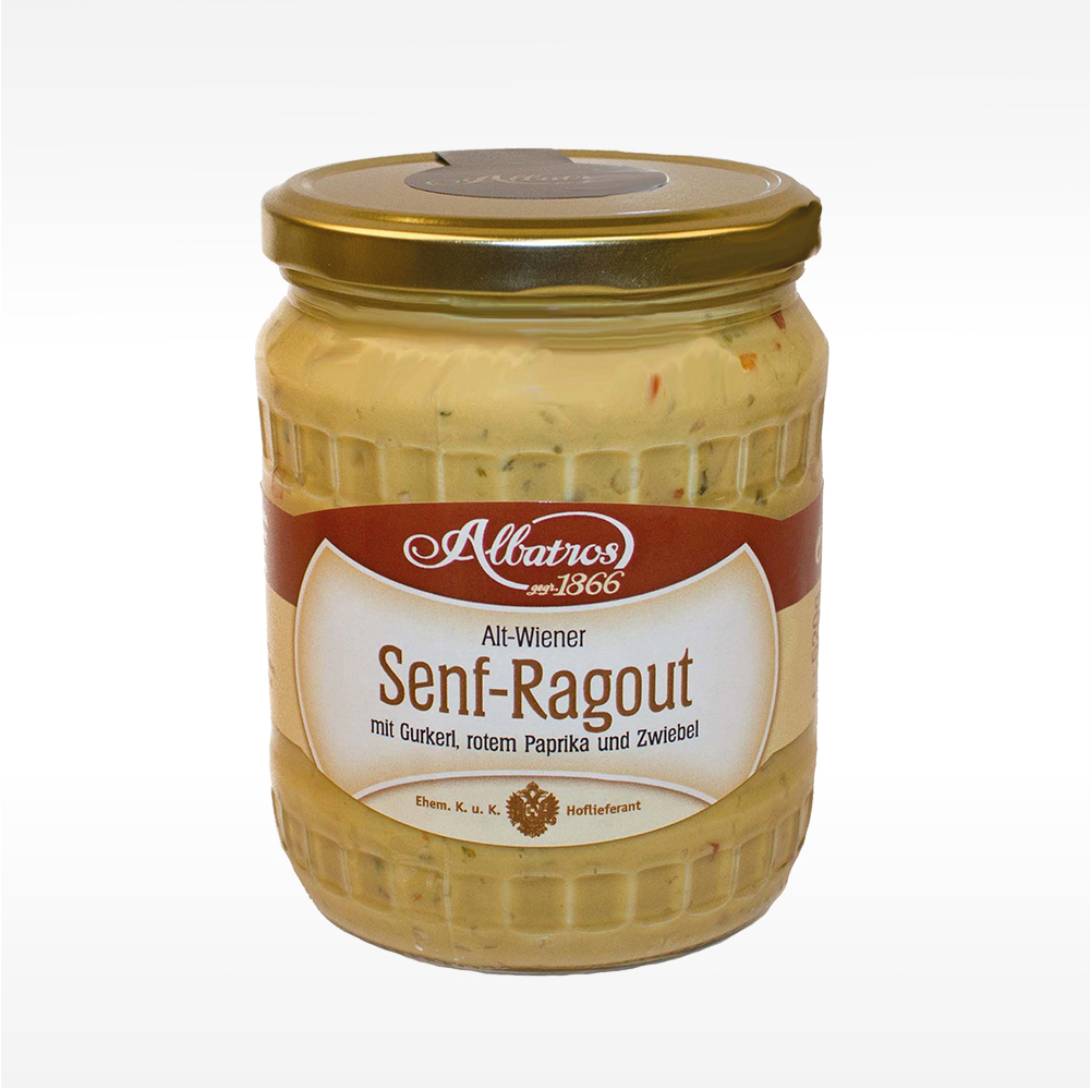Alt-Wiener Senf Ragout mit Gurkerl, rotem Paprika und Zwiebel