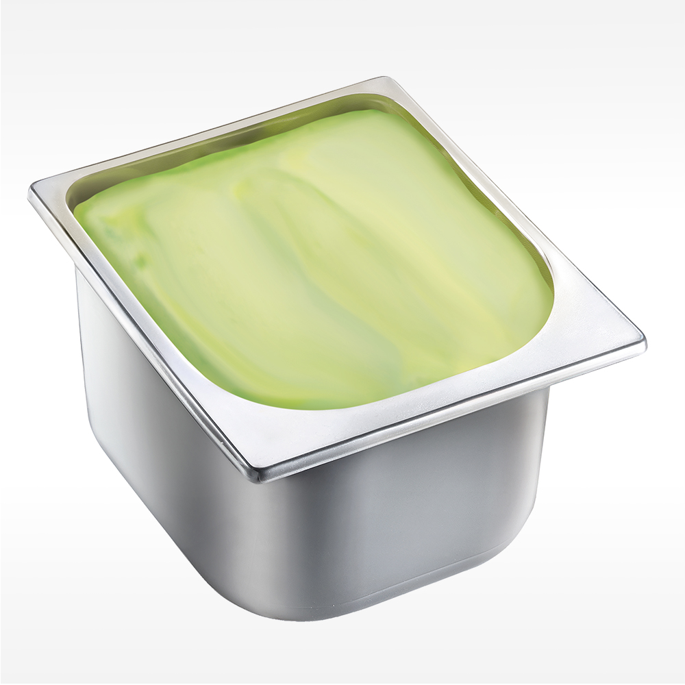 Wasser, Apfelsaft aus Fruchtsaftkonzentrat (30%), Zucker, Glukosesirup, SÜSSMOLKENPULVER, MILCHPROTEINE und LAKTOSE, MAGERMILCHPULVER, Emulgator (Mono- und Diglyceride von Speisefettsäuren), Stabilisatoren (Johannisbrotkernmehl, Guarkernmehl, Pektine), Aroma, Säuerungsmittel (Citronensäure), Farbstoffe (Kupferkomplexe der Chlorophylle und Chlorophylline, Kurkumin).