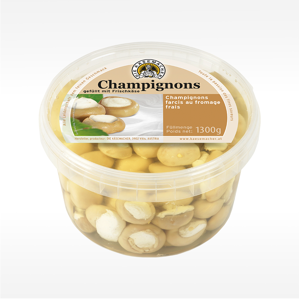 40% Champignons, 38% Rapsöl, 22% Frischkäsezubereitung mind. 45% Fett i. Tr. (Frischkäse aus pasteurisierter KUH- und SCHAFMILCH, Speisesalz, Gewürze, Verdickungsmittel: Guarkernmehl, Konservierungsstoff: Kaliumsorbat)