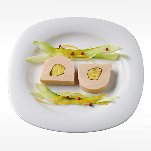 ca. 900g / Stück, Lachsfarce mit einem Kern aus Zander, Schrimps und Curcuma