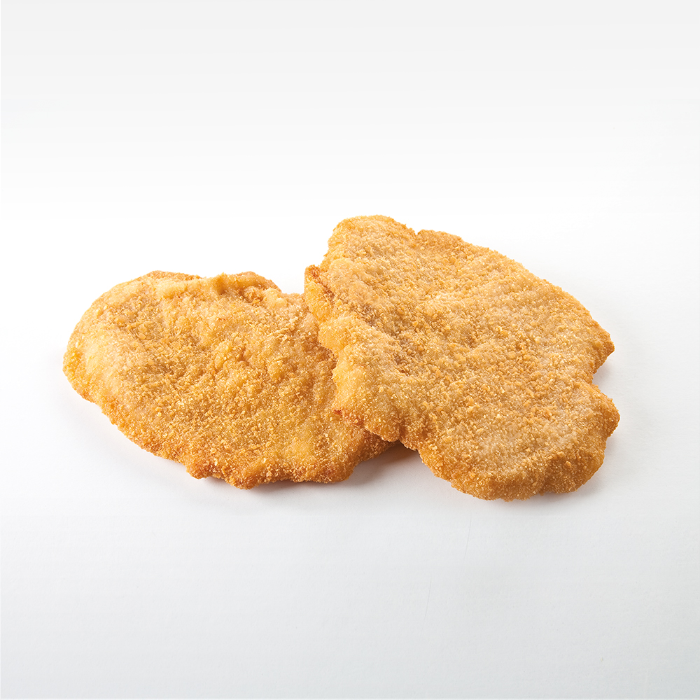 Hähnchenbrustfilet 62%, Panaden Mischung [Semmelbrösel 15%(WEIZENMEHL, Wasser, Salz, Hefe, Gewürze (Paprika)), Paniermehl (WEIZENMEHL), pasteurisierte EIER, Nasspanade (WEIZENMEHL, Wasser)], Pflanzenöl (Rapsöl), Wasser, Salz, Säureregulatoren (E450, E451), Weisser Pfeffer