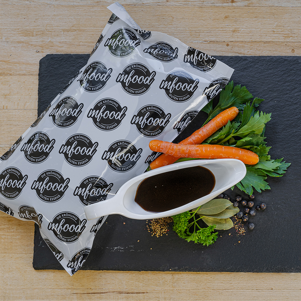 Kalbsknochen, Wurzelgemüse, Wachholderbeeren, Lorbeer, Pfeffer, Salz und ein Hauch Muskat