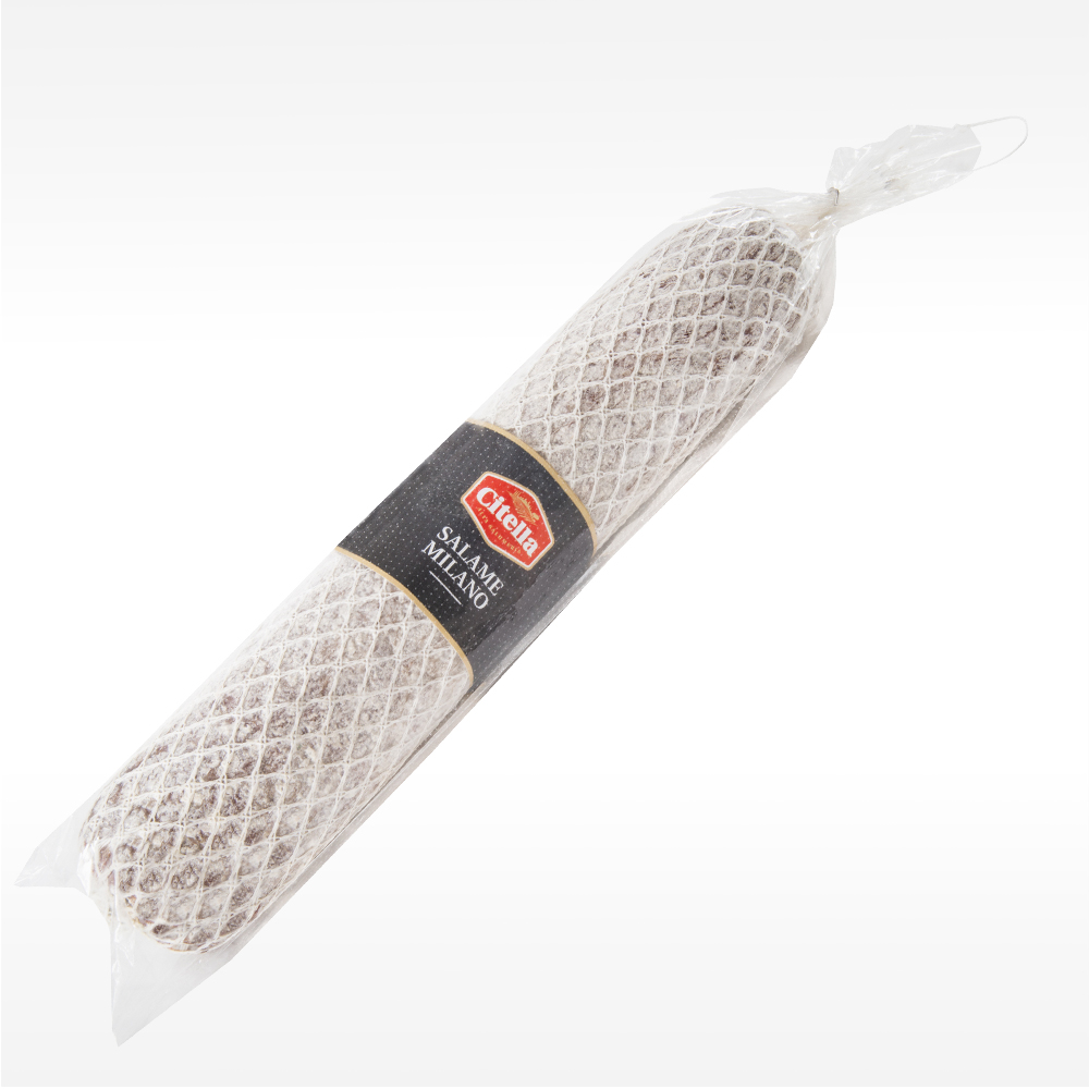 Schweinefleisch, Salz, Dextrose, Aromen, Gewürze, Konservierungsstoff: Kaliumnitrat, Natriumnitrit. 100g Salami werden aus 129g Schweinefleisch hergestellt.
