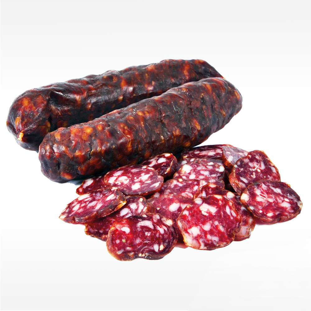 Hirsch- und Schweinefleisch, Speck, Nitritpökelsalz (Speisesalz unjodiert, Konservierungsstoff: Natriumnitrit), Maltodextrin, Gewürze, Dextrose, Saccharose, Antioxidationsmittel: Natriumascorbat, Kaltrauch. Essbare Hülle (Sschweinedarm). 100g Hirschboxelen enthalten 85g Hirschfleisch und 45g Schweinefleisch.